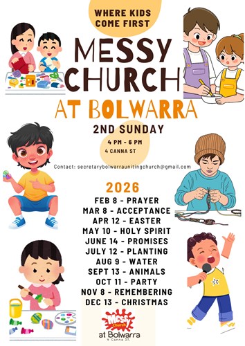 Come along to our new Family Service where kids come first in a Messy Style Church with lots of fun creative activities, singing and stories. We start at 4pm on the second Sunday of each month, followed by a sausage sizzle and fellowship at 5pm. Everyone welcome - young and old! Contact us for more information.